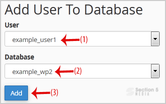3. Scroll down to the end of the page and under Add User to Database, select a user from the dropdown list, and then choose a Database from the list.