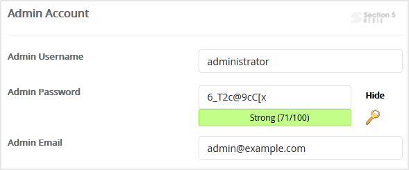 8. Under the Admin Account field, enter the following information: