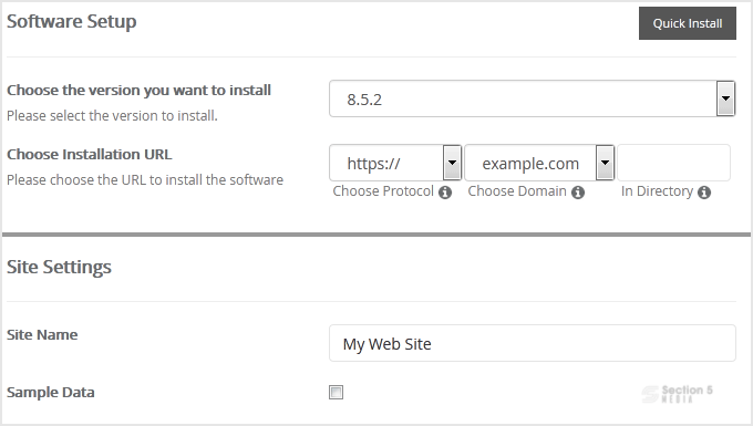 • Site Name: Enter the name of your website, such as Concrete5.