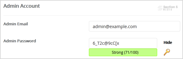 7. Under the Admin Account field, enter the following information: