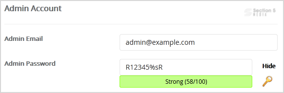 8. Under the Admin Account field, enter the following information: