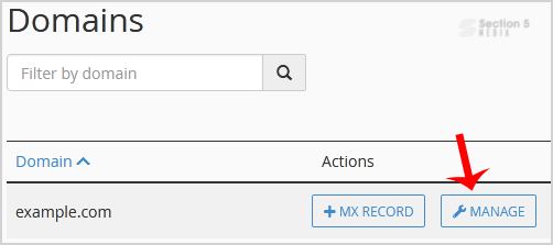 3. Under Domains, you can see many options below the Actions text.