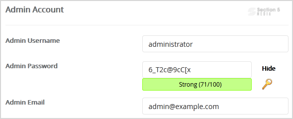 • Admin Email: Your e-mail address.