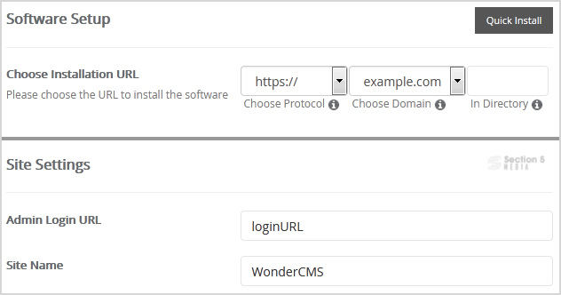 - Site Name: Enter the name of your website, such as WonderCMS.